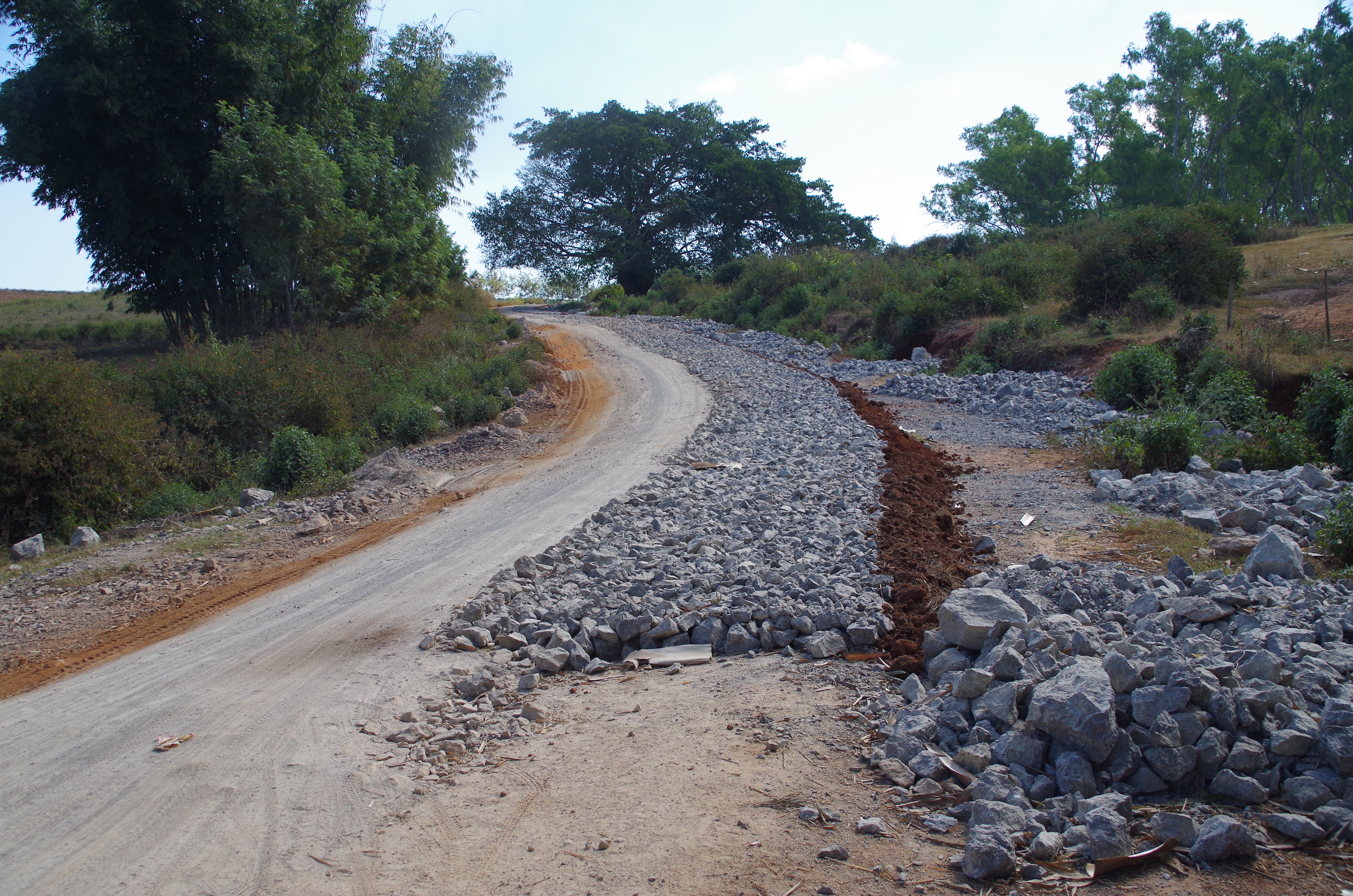 Direction Lac Inle par sentier. Maps Me nous suggère une « route » alternative pour nous rendre à Nyaung Shwe au bord du lac. Bonne idée et le début est asphaltée, en peau de chagrin dira Josée. Puis nous subissons 30 Km de piste poussièreuse et ou en reconstruction. Ça brasse mais c’est beau! C’est un peu le même trajet que les randonneurs font.