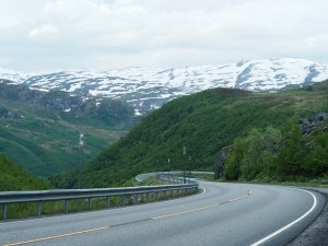Retour sur nos pas pour descendre en lacet par la petite route d’évitement tout ce qu’on avait monté et arriver à Roldal prendre un camping, avec douche. Certaine descente étaient grisante, je chantais « I want to fly like an Eagle, let the spirit cary me » mais j’ai pas lâché le guidon ! Les montagnes environnantes, enneigés et les eaux turquoises sont splendides. Les photos ne rendent pas justice au décor.