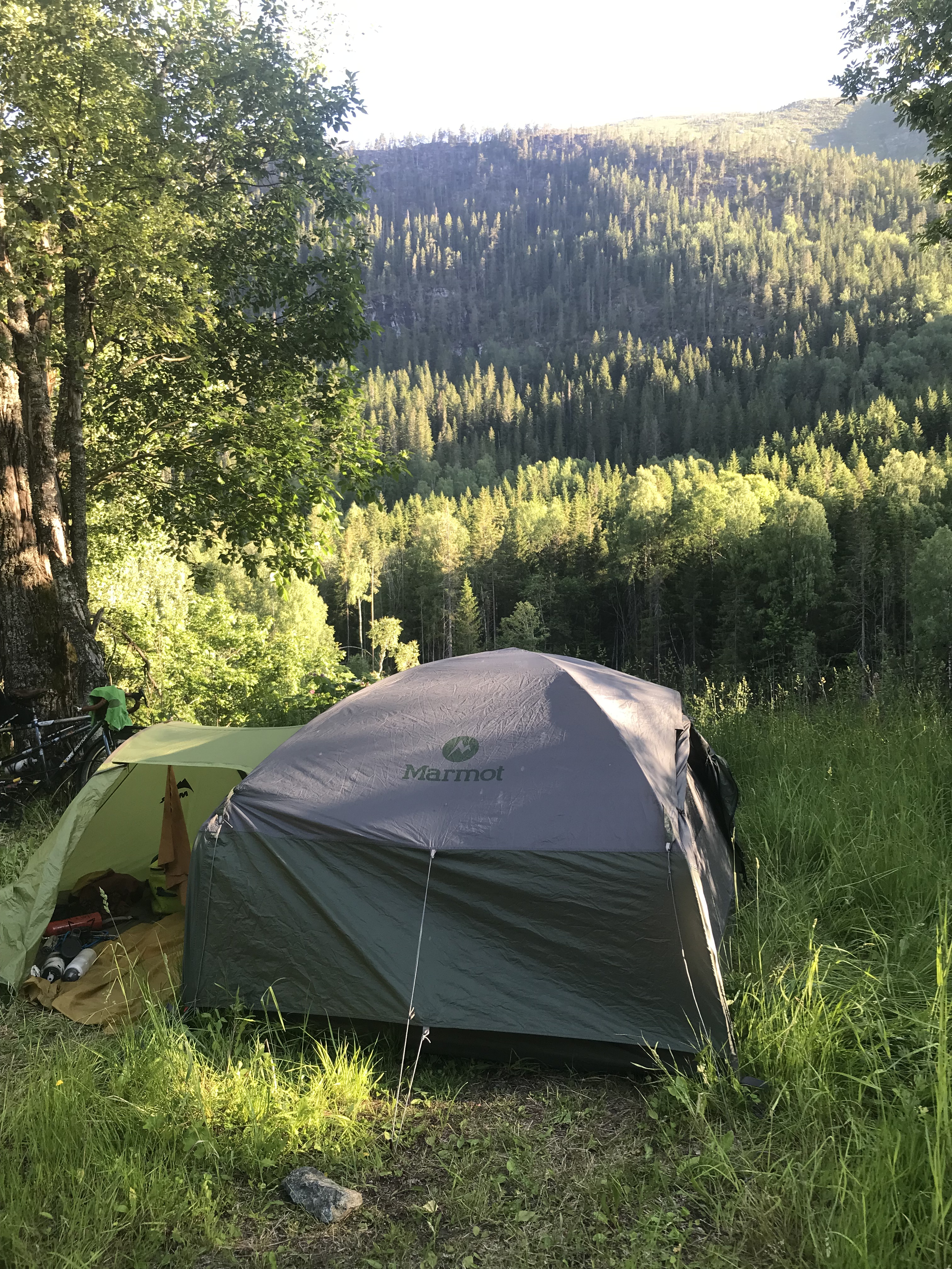 Avec tout ça on n’a pas parlé de la sortie de Oslo ! Sortir d’une grande ville, même avec de belles pistes cyclables, est toujours laborieux et dans ce cas-ci pentu au point de pousser le tandem pour nous rendre à Drammen au calme au bord de l’eau dans un camping trois fois moins cher qu’à Oslo. Le lendemain nous trouvons le plus beau spot de camping sauvage au bord d’un lac après une superbe journée. Les journées se suivent en beauté.