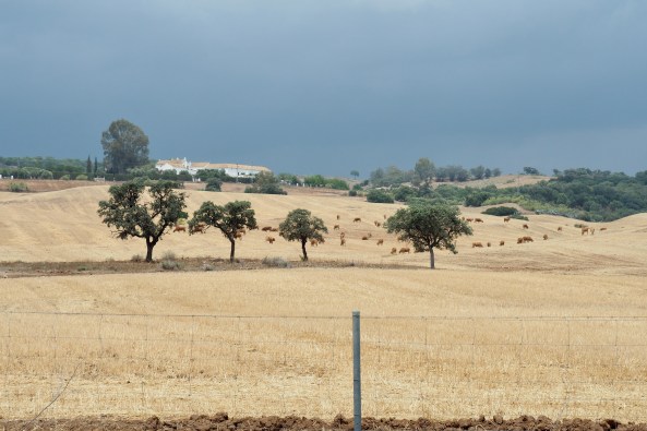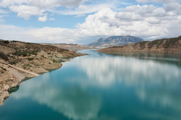 Nous quittons Córdoba à regret, nous y étions bien et ici dans la péninsule Ibérique, cette ville est un coup de cœur pour nous. Ainsi nous reprenons la route de l’intérieur, donc vers les montagnes. Des kilomètres de vallons en oliveraies, à perte de vues. Pas le moindre petit pic y échappe. Il fait chaud, la route est belle mais la ‘via verde » piste cyclable est compliqué et difficile à rouler. De plus les orages nous guettent à tout moments. La région est aride, tout doit être irrigué, même les oliviers. Nous passerons par certains parcs dons la réserve naturel de Sierra Magina et le réservoir Nigratin qui est bien bas, paysages surnaturels. En quittant le bord de ce réservoir de gros dénivelé nous guette, dont l’un de 275 m en 5 km et une heure à souffrir. Ouff nous avons eu chaud.