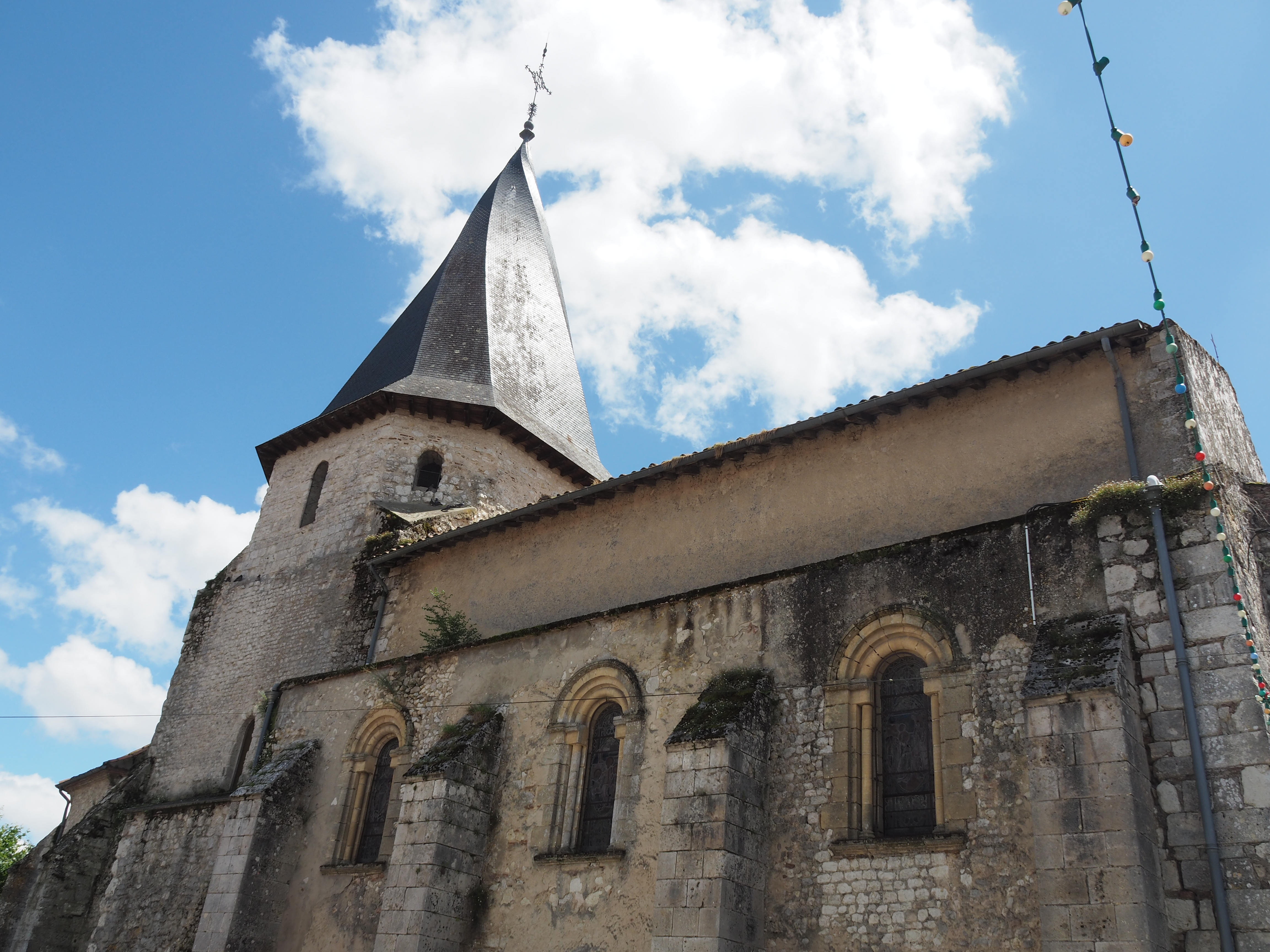 OLYMPUS DIGITAL CAMERA Précédent Suivant Église du Xl siècle avec son pignon tordu à Sérignac sur Garonne.