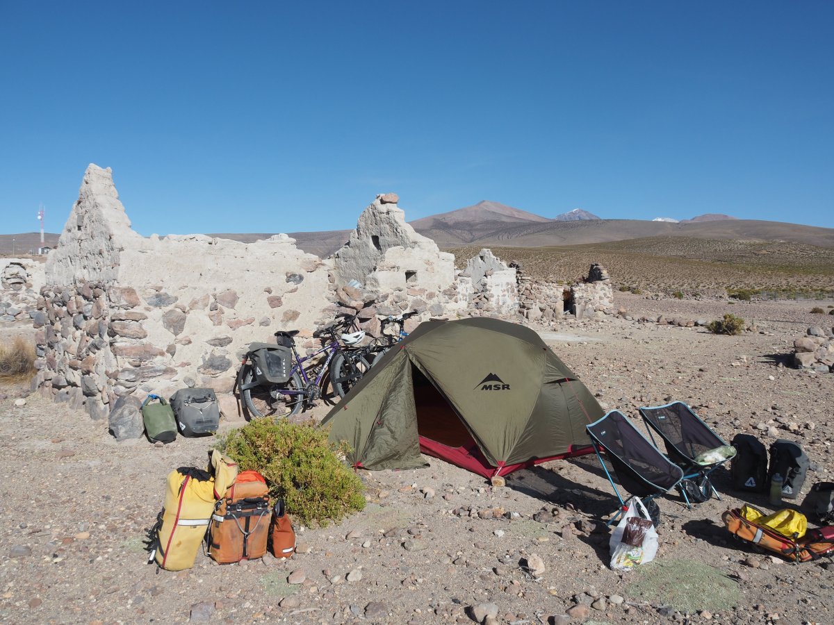 Bivouac à l’abri des ruines. Il ventait en titi.
