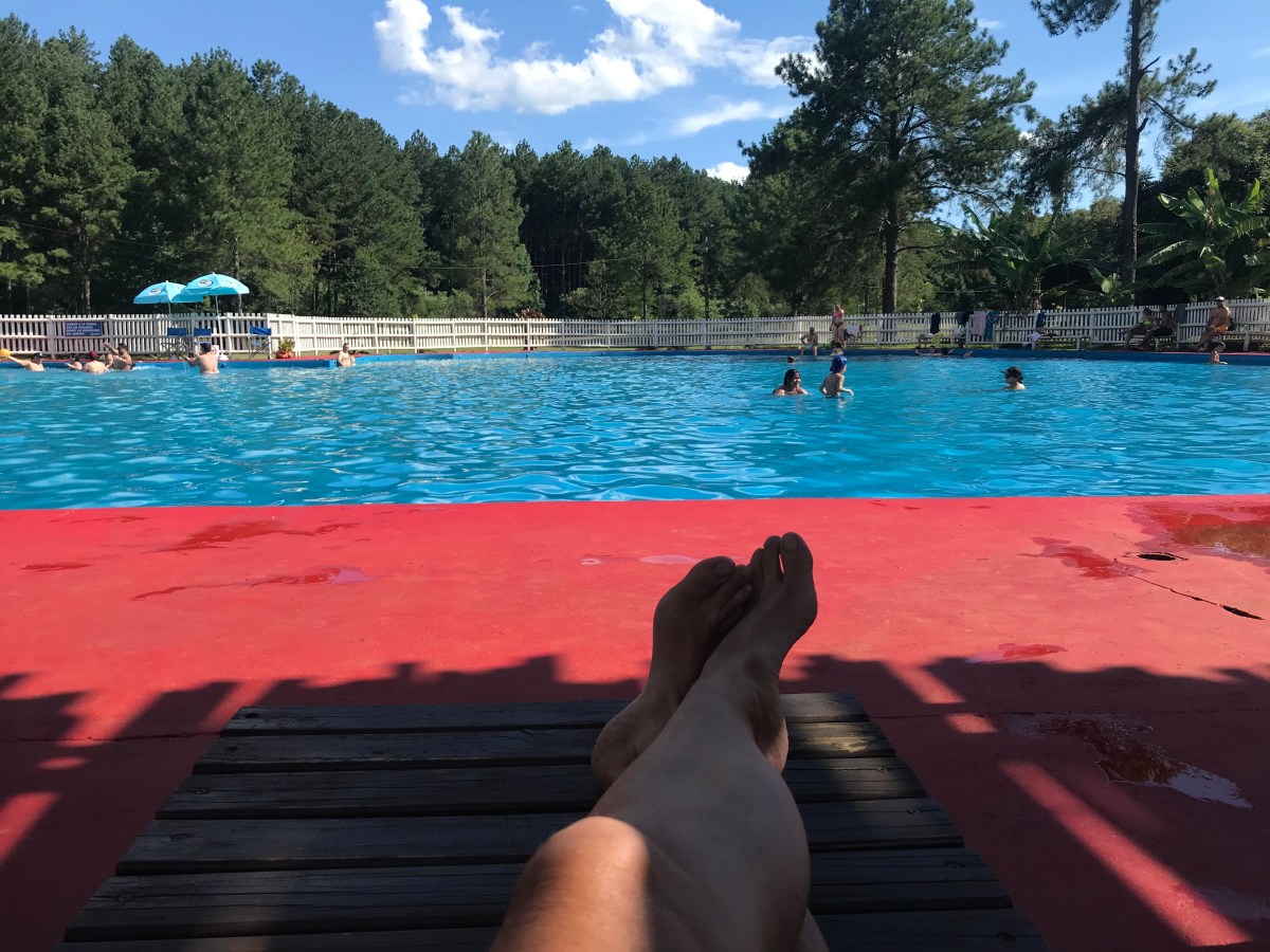 Un camping gratuit incluant la piscine. Mais l’eau est tellement chaude!