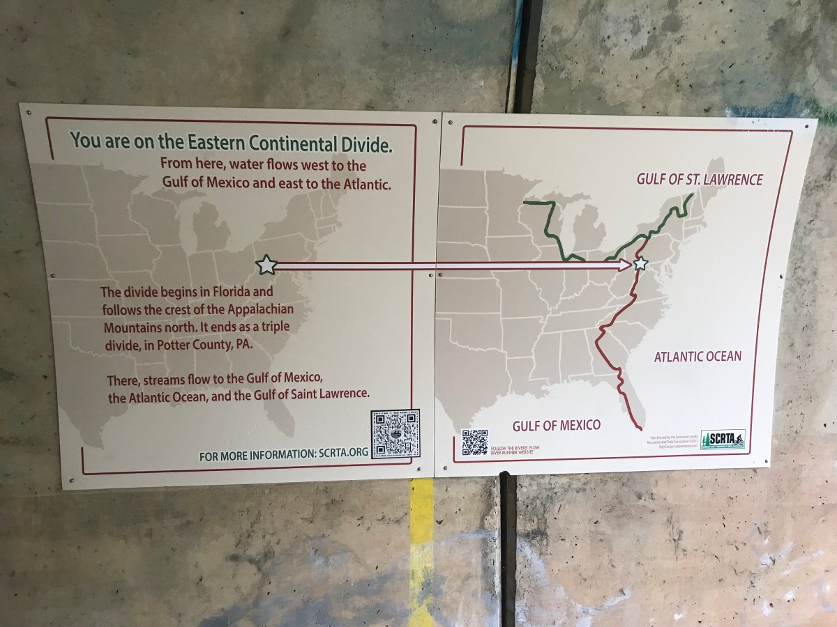 IMG_2223 Précédent Suivant Ligne de partage des eaux. Pour nous ce sera la direction du golf du St-Laurent.