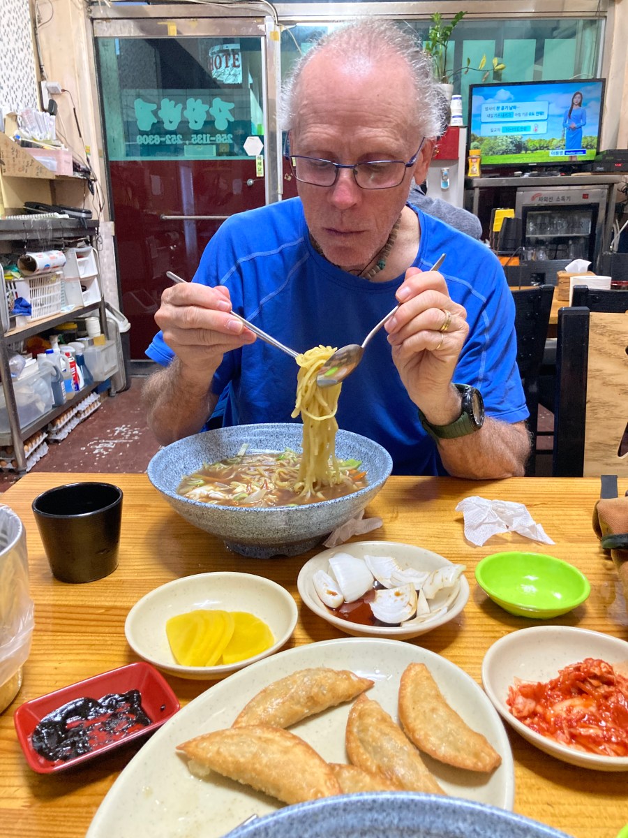 Mmmm nouilles udon, toujours accompagné de kimchi.
