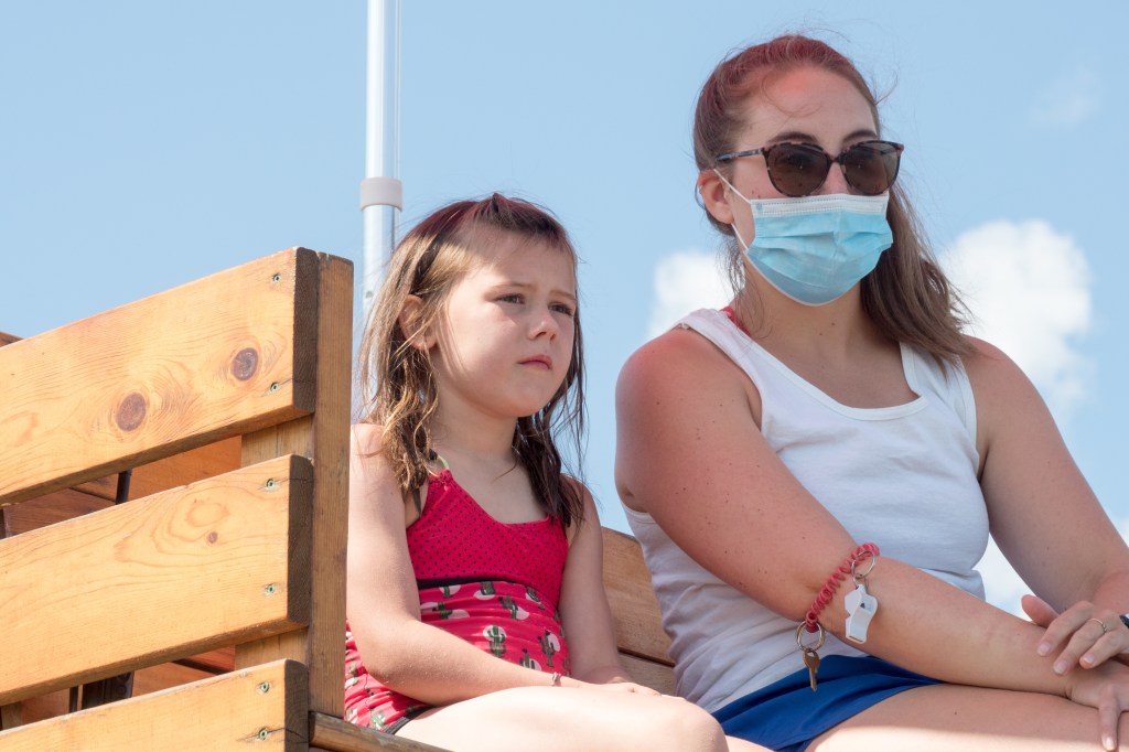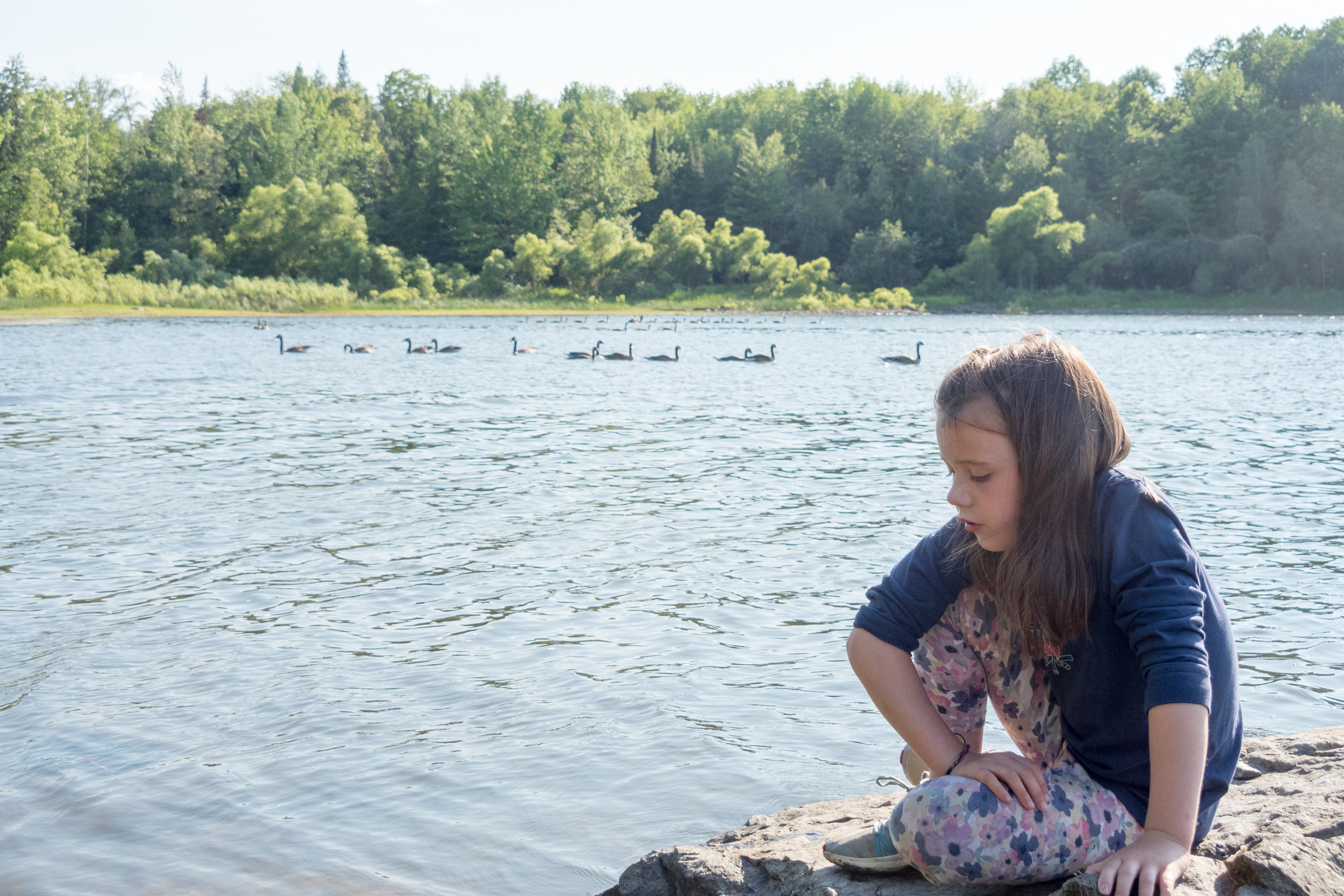 Nous campons le premier soir au même emplacement qu’avec sa soeur il y a une semaine. Le beau temps est avec nous et Emma s’amuse beaucoup à la plage. Elle y fait même un mini stage avec la sauveteur. Tout près de notre site nous pouvons aussi nous rendre au bord de l’eau ramasser des roches ou les lancer dans l’eau.