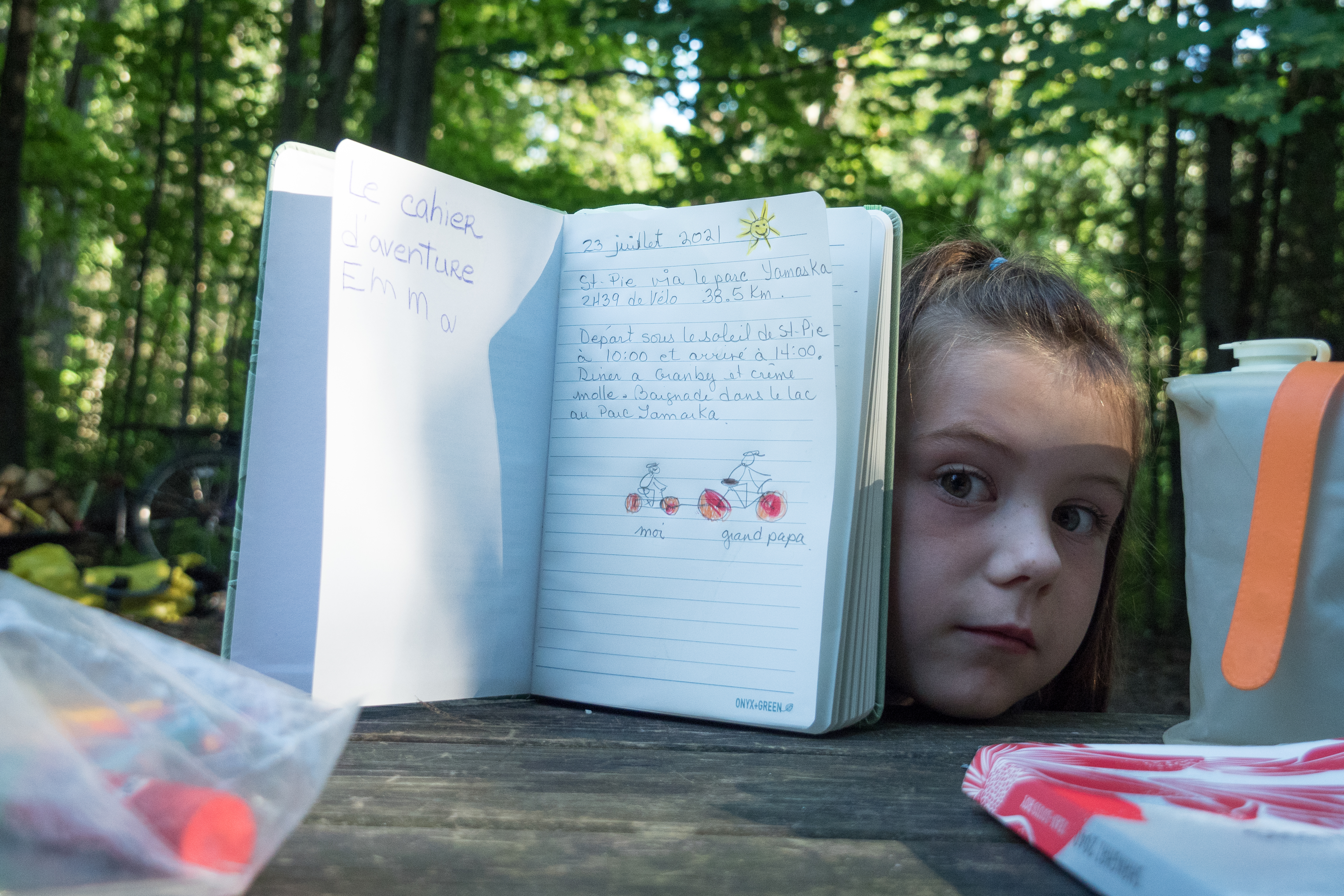 Chaque enfants aura dessiné dans leur journal de bord, grand maman y ajoutera u peu de texte et grand papa y inclura quelques photos choisit par eux. Un bon souvenir pour tous. A refaire.