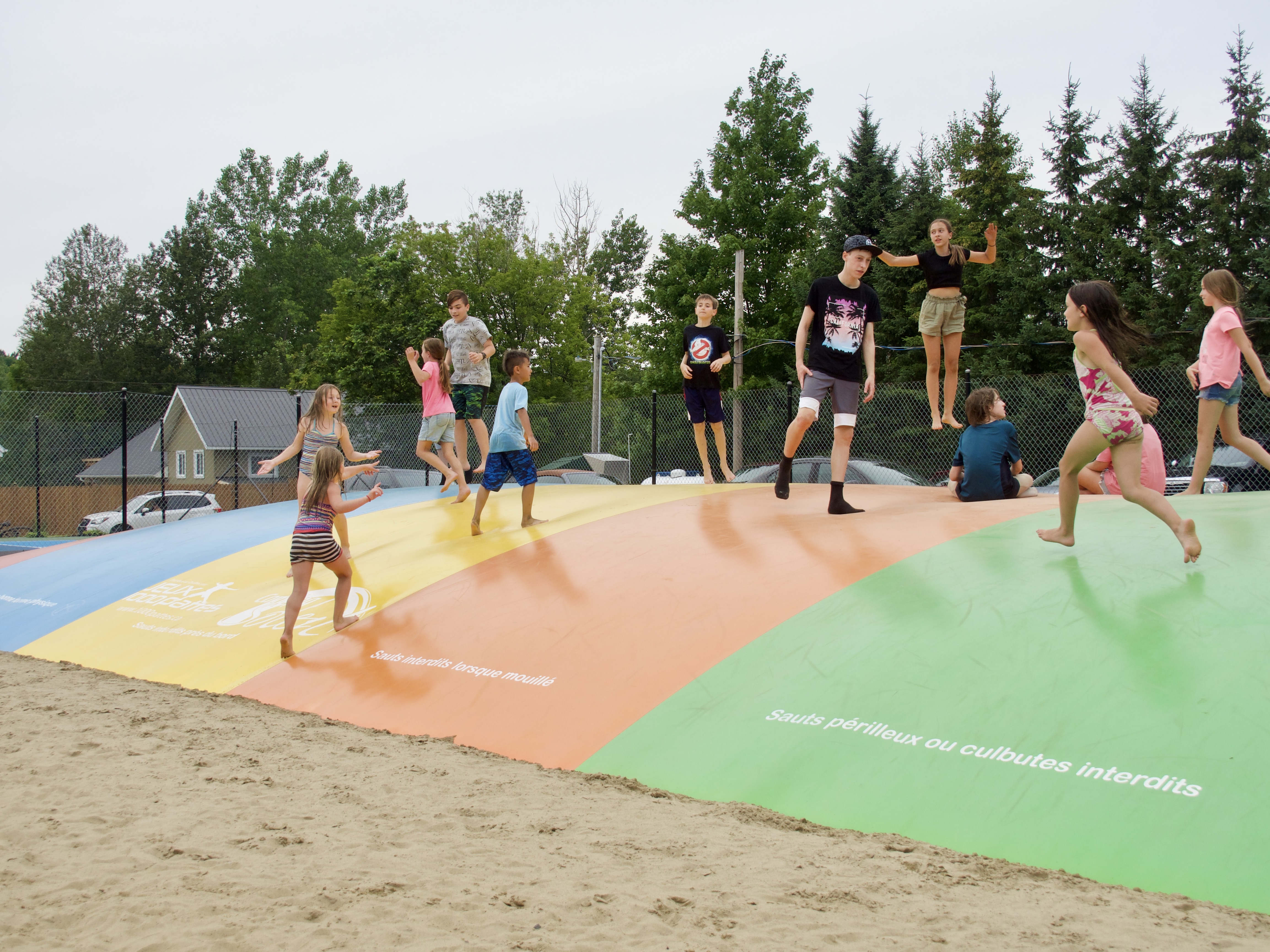 Elle avait vraiment hâte d’essayer la super trampoline et la baignade au camping. C’est fou comme elle se fait des amis rapidement. Quelques minutes de jeu dans la piscine et hop deux ou trois nouvelles amies !