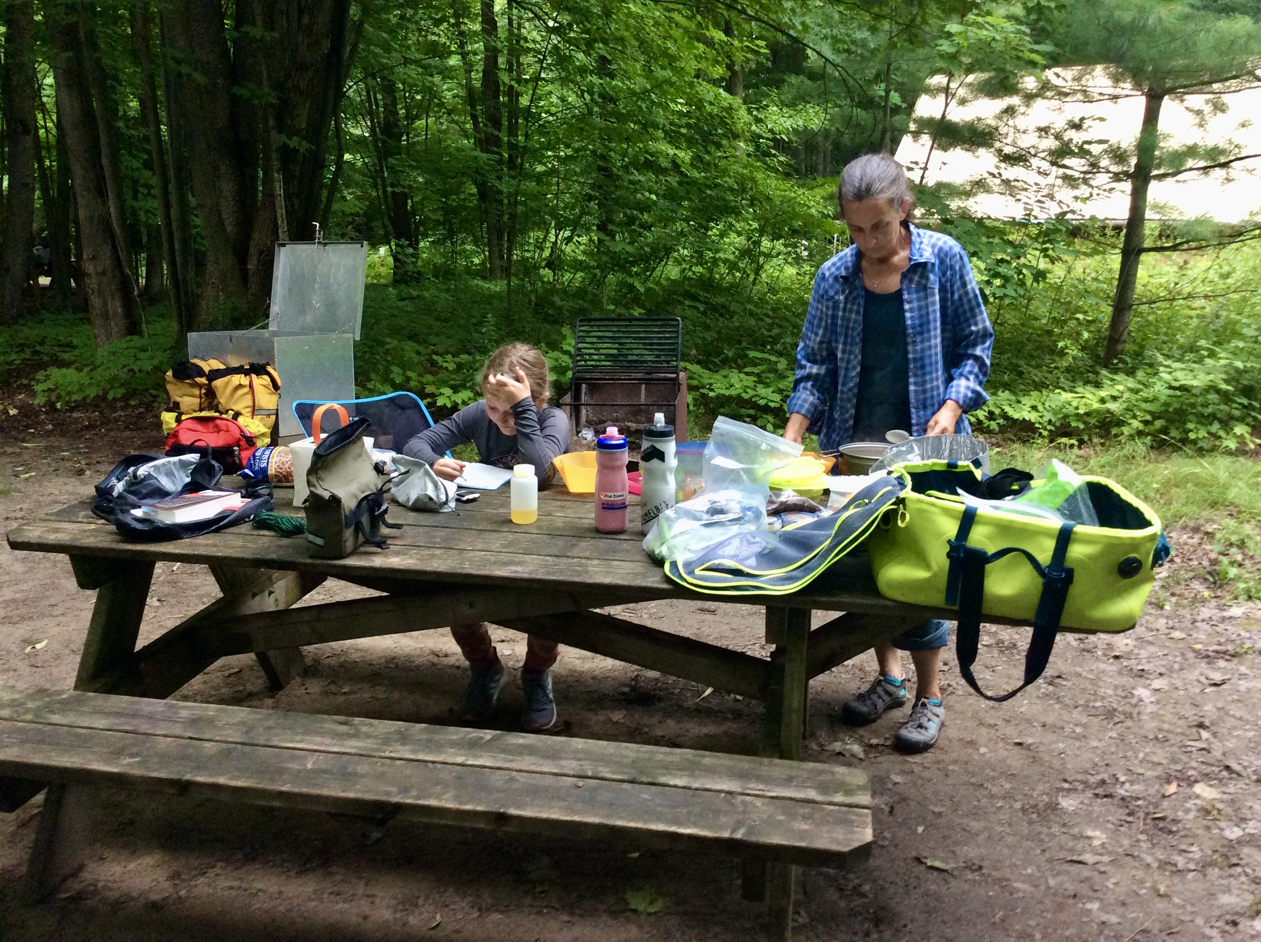 Le lendemain une petite pluie nous accompagne vers le parc Nationale de la Yamaska où nous prendrons encore un emplacement Bienvenue cyclistes. En passant, les sites pour cyclistes sont super, près des blocs sanitaire et juste à coté de la piste cyclable et le coût de 11$ par personne est vraiment bien. Encore ici Alice se fait un groupe d’amies et elles rechercherons des lutins une bonne partie de la soirée. Quel énergie ont les enfants ! 35 Km de vélo en avant midi, baignade de quelques heures au lac, jouer au ballon et chercher des lutins en soirée, ouff. Soyez sans crainte elle a bien dormi.