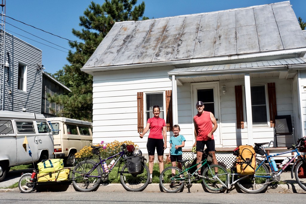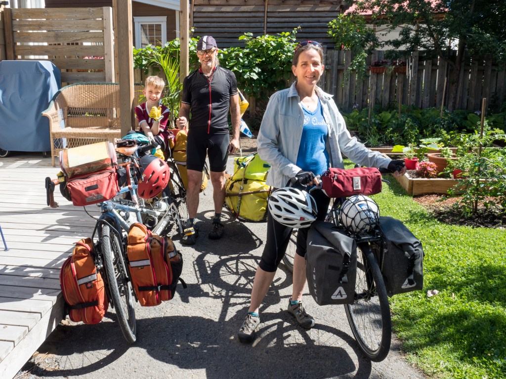 Cette année nous caressions le projet de partir quelques jours avec chacun de nos trois petits enfants. L’idée étant de partir à vélo avec un enfant à la fois pour trois ou quatre jours en autonomie complète et en camping sans leurs parents, évidemment. Dès le début de l’été nous fixons un premier départ avec Léopold, le plus vieux, 8 ans. Sa mère nous laisse son fils à notre maison de Drummondville et nous, nous retournerons chez eux à Montréal à vélo.Griffintown nous voilà. Josée sera seul sur son vélo tandis que Léopold et moi ferons un duo sur le tandem. Une fois la selle au plus bas et un doublement des pédales ses petites jambes se rendent aux pédales et nous sommes prêt à partir.