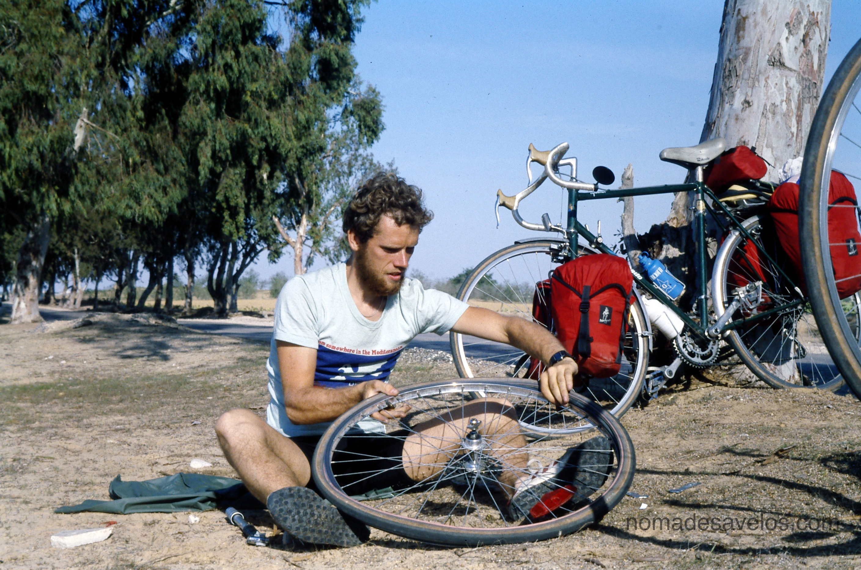 Sur nos petites montures cyclotouristes Mikado et nos petits sacs Montagnard (les premières Arkel), notre équipement était simple, mais déjà efficace. Nous n’avons jamais voyagé aussi léger.