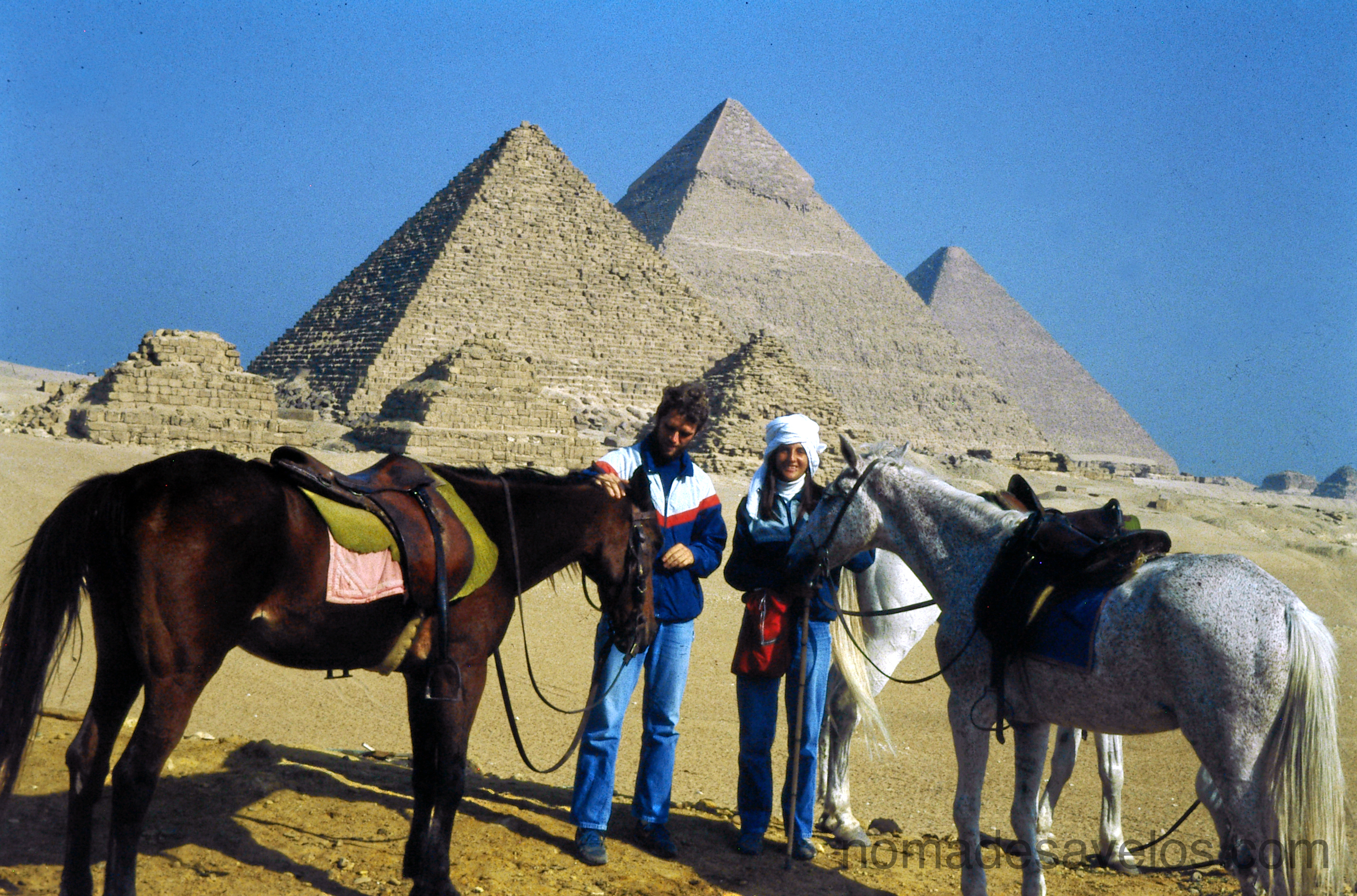 Pour la suite de notre projet, l’Égypte par le désert du Sinaï. C’est bien beau, mais il y a la Palestine sur le chemin et la tension avec Israël. Au poste de contrôle le militaire ne veut pas nous laisser passer, pas question non plus de retourner à Gaza. Bon on fait quoi? Il nous invite (sans nous laisser le choix) au camp militaire pour la nuit et nous réserve un transport pour le désert jusqu’au Caire, car selon lui pas question non plus de traverser le désert à vélo, trop dangereux, et il ne veut pas de problèmes diplomatiques. Nous partageons un taxi avec une famille locale et une Anglaise qui vit au Caire. Cette dernière nous invite chez elle pour la durée de notre voyage en Égypte. Le Caire, une ville qui est un pays en soi par sa population, sa diversité et son histoire. Les pyramides, Luksor et plus encore.