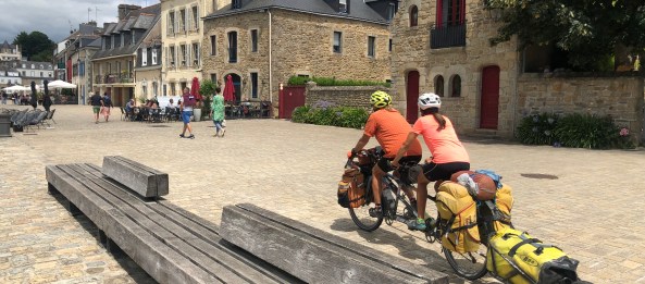 | Bris mécanique | 2 | La manette de vitesse de droite a cassé en France mais elle a fonctionné jusqu’à la fin avec un peu de tape et de la prudence! Le moyeu de roue arrière a cédé en Irlande. Nous avons remplacé la roue au complet. La nouvelle roue ayant un moyeu moins large qu’un moyeu de tandem, nous avons dû être imaginatif et un peu bricoleur. |