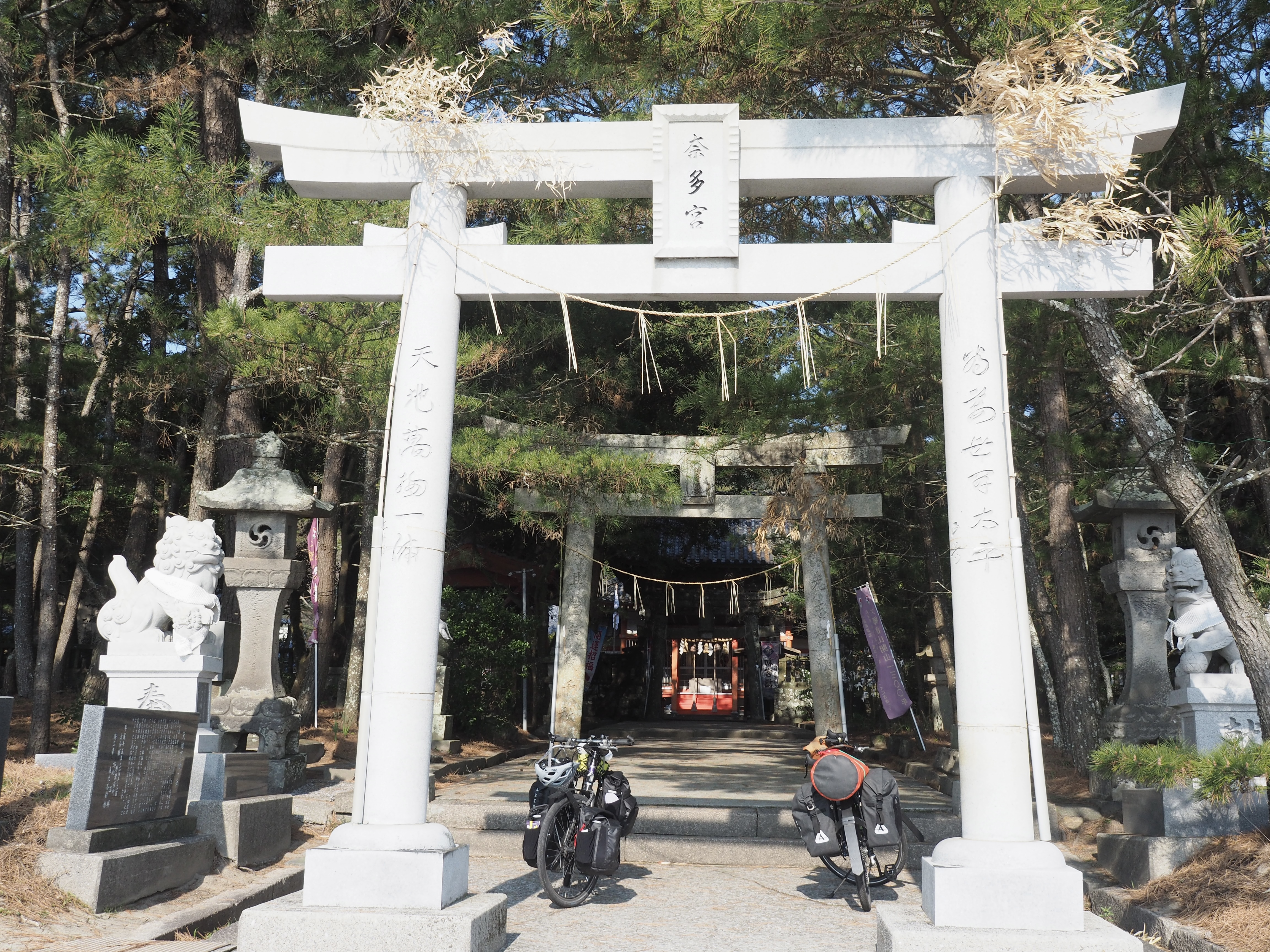 Les trois derniers jours nous avons eu toutes les météos, même de la neige. Ce soir la nous avons dormi dans un love hotel. Le lendemain après 15 tunnels nous couchons en bord de mer avec le magnifique Shrine Hachimannadu derrière nous. Le matin en se levant vers 6h pour voir le soleil se lever, il y a une douzaine de photographes devant la tente, pour la même raison ! Demain, 21 mars, départ vers le ferry qui nous mènera sur l’île de Shikoku.