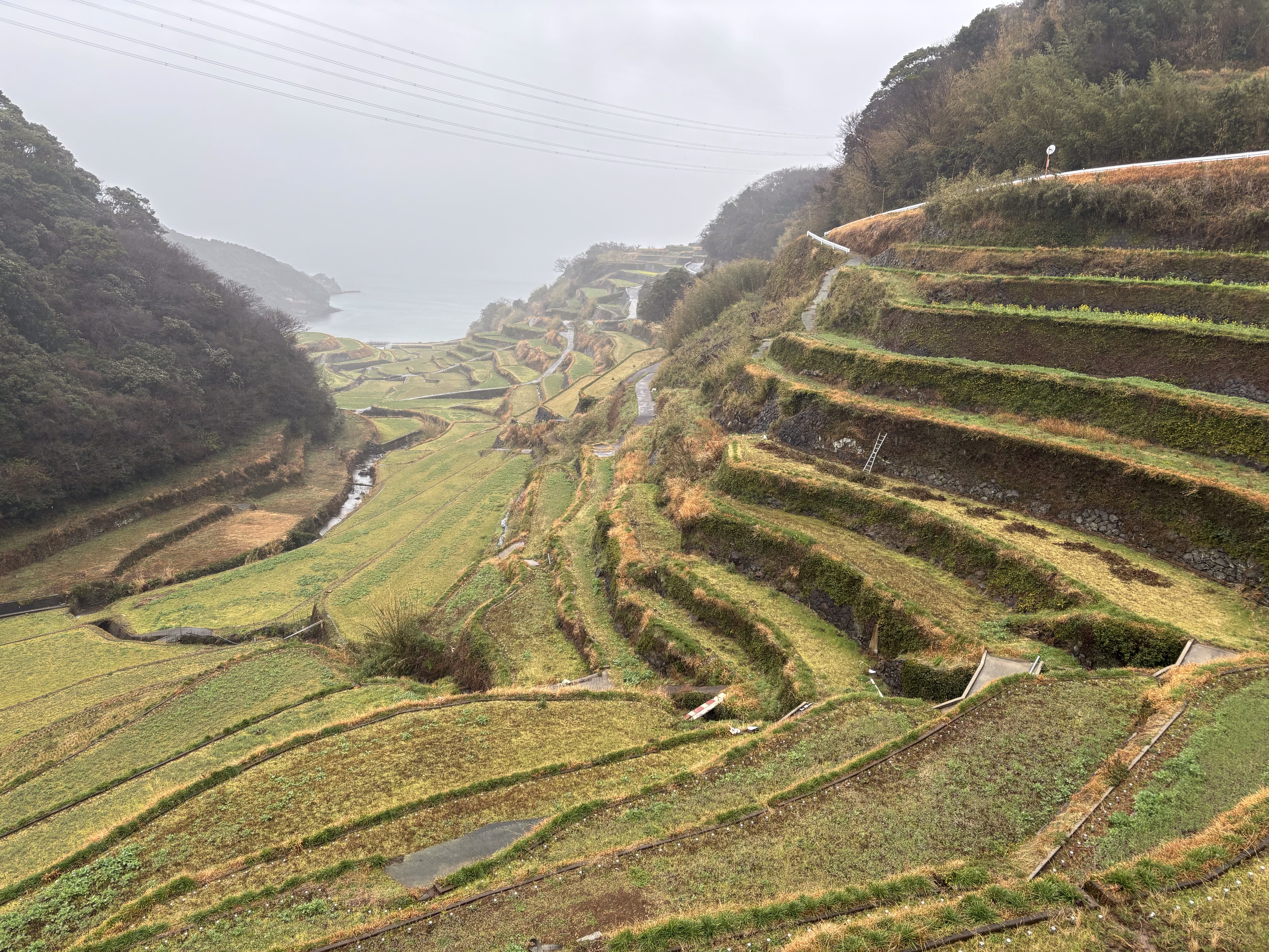 Vendredi nous passons la journée dans Fukuoka. Parcs, temples et un repas au renommée Shin Shin, le clou de la journée. Il faut faire la file d’attente à l’extérieur pour une bonne demi-heure avant de pénétrer dans ce minuscule resto où il te faudra probablement partager la table avec des inconnus. Mais les raviolis arrivent du ciel c’est certain et les nouilles ramen se dévorent rapidement. Rapidement est le bon mot, car ici la clientèle roule. T’attends, tu commandes en arrivant car tu auras regardé le menu lors de ton attente (le gars qui fait la circulation et qui distribue les parapluies te fait scanner le code QR du menu), tu manges et tu dégages. Visite d’une épicerie, une vraie, pas un 7eleven, pour savoir un peu à quoi s’attendre. On a quand même trouvé du beurre d’arachide, du pain (très léger), du gruau et des bananes (les autres fruits sont hors de prix) sans compter les onigaris. Ça part bien pour des cyclistes.