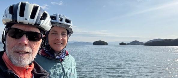 Samedi, notre première journée de vélo se passera surtout en bord de mer. C’est plutôt jolie. Nous croisons beaucoup de cyclistes en peloton, en couple et seul. Tous nous saluent. Origato!