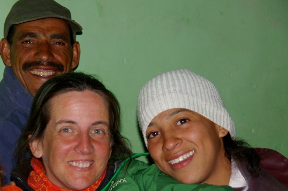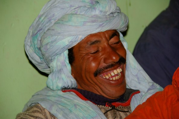 Depuis des jours qu’on demande si il y a des hébergements à Tinejdad et qu’on nous répond oui oui. Nous y voilà après 90 Km vent de face et petit faux plat constant pour nous faire dire, non non, ha si en sortant de la ville, qui fait 10 Km de long, pour vrai. On se dit, ouaip, probablement une casbah de touriste ben trop cher pour nous. Alors après un bon café au lait trop cher on traverse pour manger et faire des provisions au cas ou! Et nous tombons sur deux Américains gentils comme tout qui nous invite pour le sandwich puis pour coucher et le repas avec Mohamed et c’est parti pour la douche chaude et le spaghetti mon kiki. Bénévole « Peace Corps » pour deux ans au milieu de … pas grand chose ils oeuvrent soit avec les jeunes ou les artisans pour améliorer le produit fini ou les encourager à s’investir dans quelque chose de constructif pour la collectivité. Dan débute sa deuxième année et Will de l’âge de nos enfants et chez qui nous sommes en est à ses premiers mois. Un beau programme. Pour le repas nous rencontrons Mohamed, un professeur de langues qui gagne trop peu pour qu’on en parle. Nous apprenons beaucoup sur le Maroc grâce à cette rencontre si sympathique. Comme quoi tout s’arrange, même à 16h quand on pense qu’il nous faudra peut-être rouler 50 autres Km pour la prochaine ville ou coucher dans les cailloux du désert. Inch Allah, les amis. En passant, il y a une petite auberge juste en sortant de la ville, à gauche, pas une grosse casbah, la casbah est un peu plus loin encore.