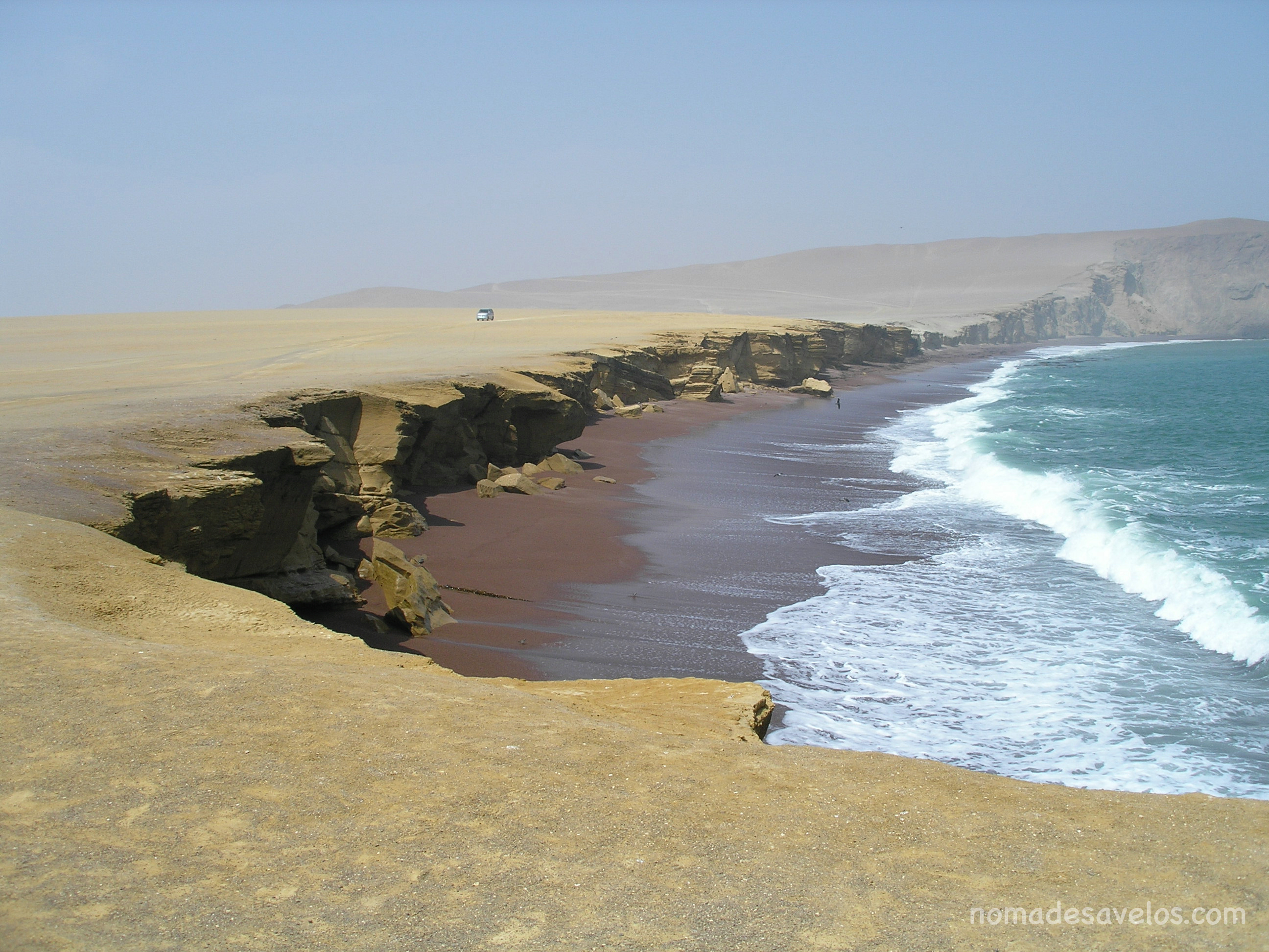 Un passage par le parc National Paracas près de Pisco. Là, nous avons eu une petite surprise, dans notre tête un parc égal verdure. Mais En fait c’est du sable à perte de vue, il tombe 1 mm d’eau par année. La plage est constitué de coquillage concassé. Pas besoin d’essuie glace sur les autos! Finalement c’est un site protégé pour la faune marine. Nous sommes un peu déçu mais la mer est belle.