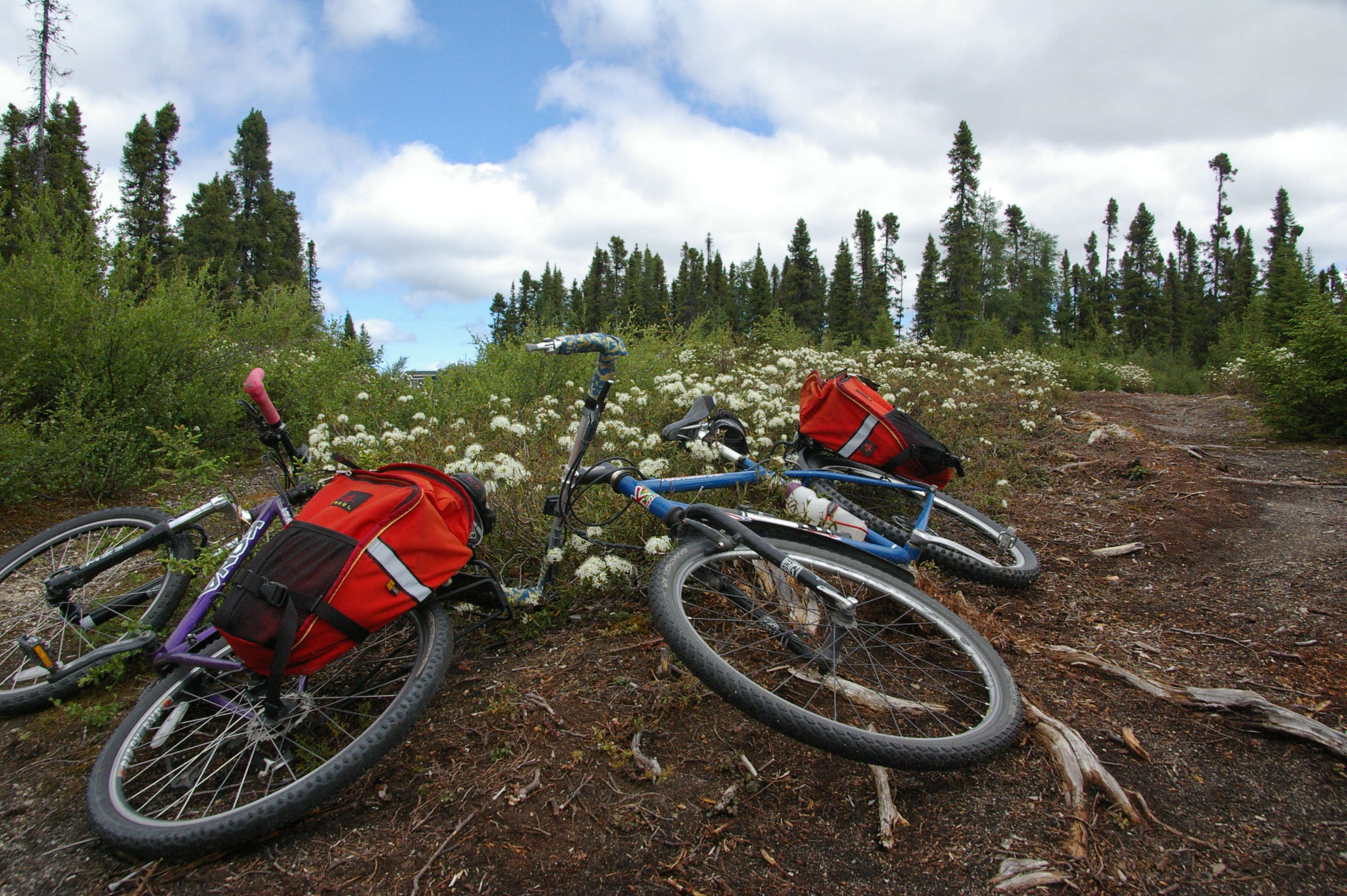 Nous utilisons les XM-45 à l’arrière, vraiment imperméable. Le tout est complété par une sacoche guidon qui contient surtout le matériel photo.Nous utilisons aussi les « cover » pour toutes nos sacoches. Elles restes ainsi propres pour entrer à l’intérieur et elles servent aussi a nous rendre très voyants, sans compter que les petits doigts curieux ont un accès moins facile au contenu des sacoches!